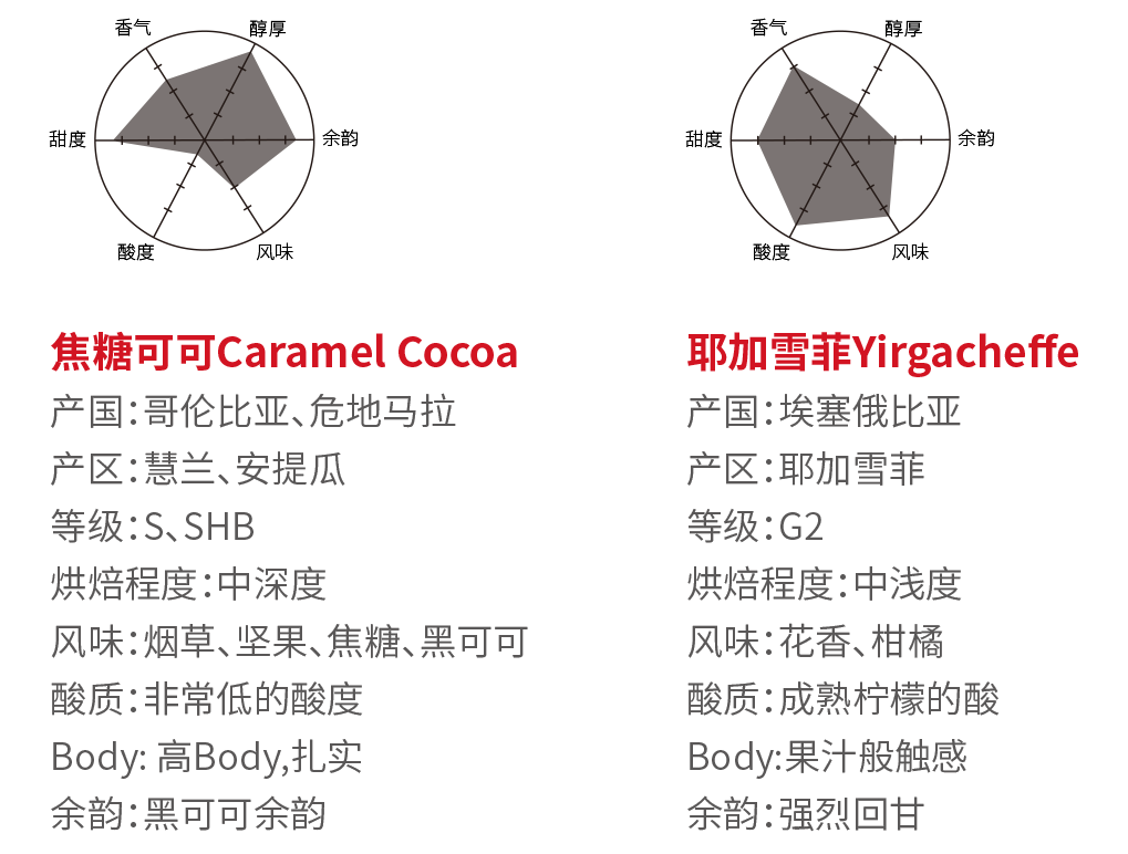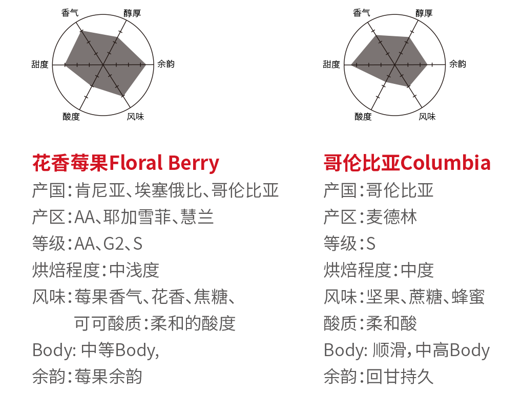 红色是经典的象征。红袋系列体现了源铭20多年来积累的原产地资源,以及深厚的拣选功力。红袋系列精选各主要产地优势单品及拼配品种,包括蓝山、哥伦比亚、曼特宁等20多款产品,呈现不同产区生豆的独特魅力。